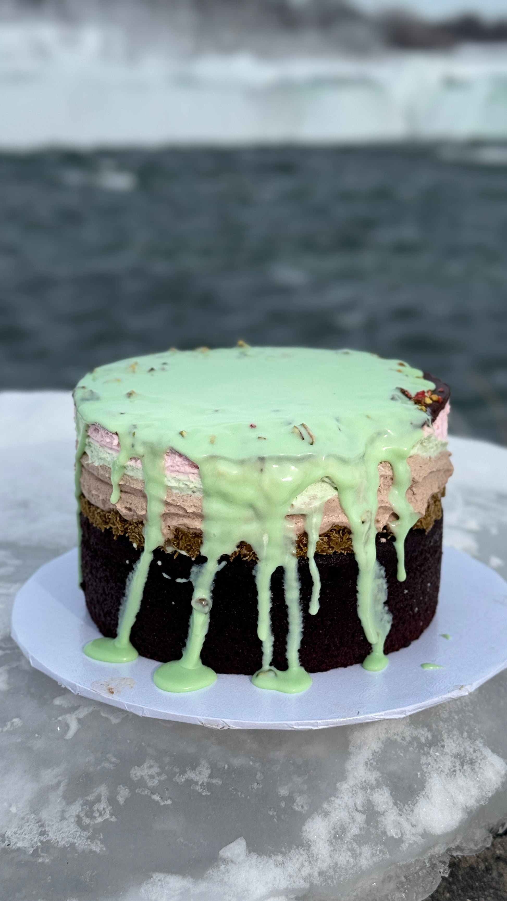 Our Pistachio Chocolate Crunch Cake is the perfect treat to satisfy your cravings.